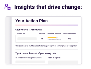 Jump from reviewing results to taking action with recommendations based on your organization’s unique results. There’s an Action Plan for every manager, which means you can mobilize quickly and see results sooner.